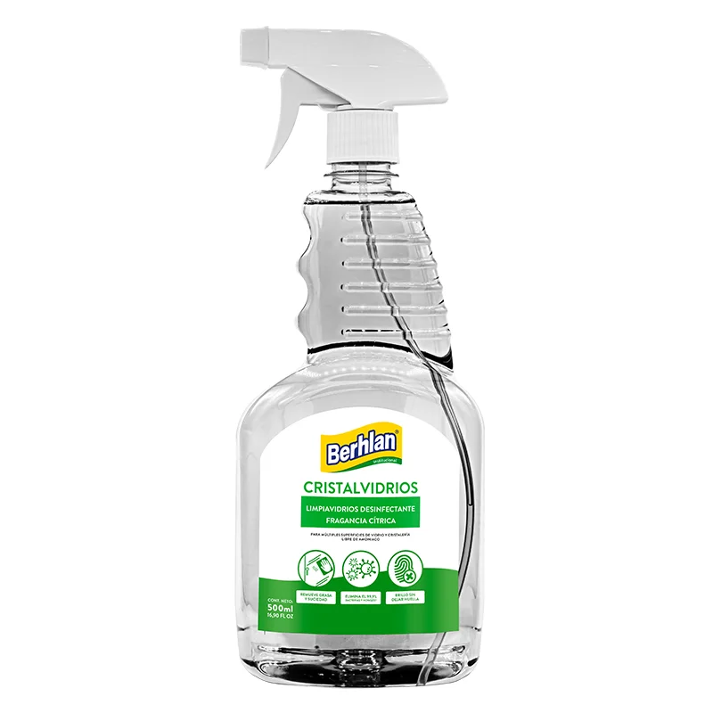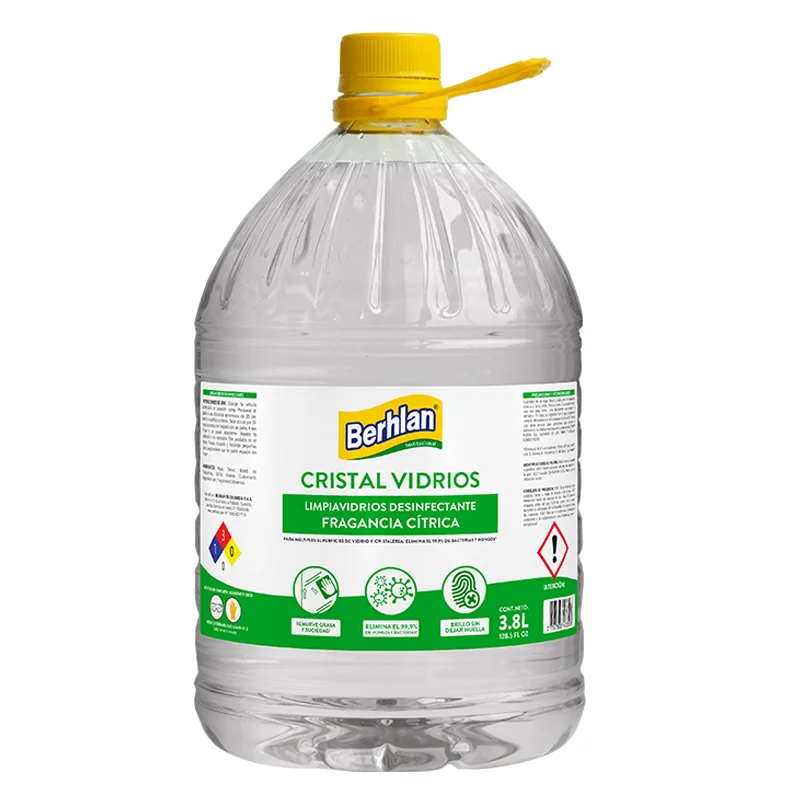 Logra un brillo impecable con este limpiador de vidrios desinfectante, diseñado para eliminar rápidamente manchas, polvo y huellas, dejando tus superficies transparentes y relucientes.